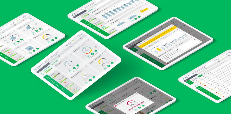 Une première de console opérateur pour une ligne de pâtes a été imaginée puis un ensemble d’écrans responsives pour la salle de contrôle d’une cave de vin ont été dessinés.